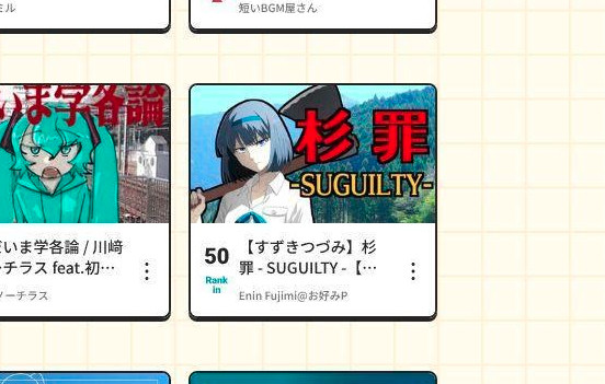 Also, someone was saving screenshots of the rankings every hour, and when I checked, I discovered that my song had temporarily risen to 50th place twice.